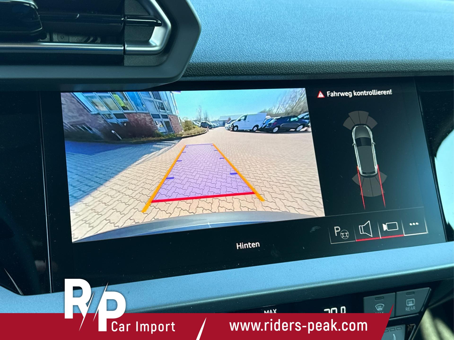 • PYK Rückfahrkamera - Zeigt den Bereich hinter dem Fahrzeug auf dem MMI-Bildschirm an und zeigt die optimale Parkbahn mithilfe dynamischer Anzeigeelemente an vorhanden