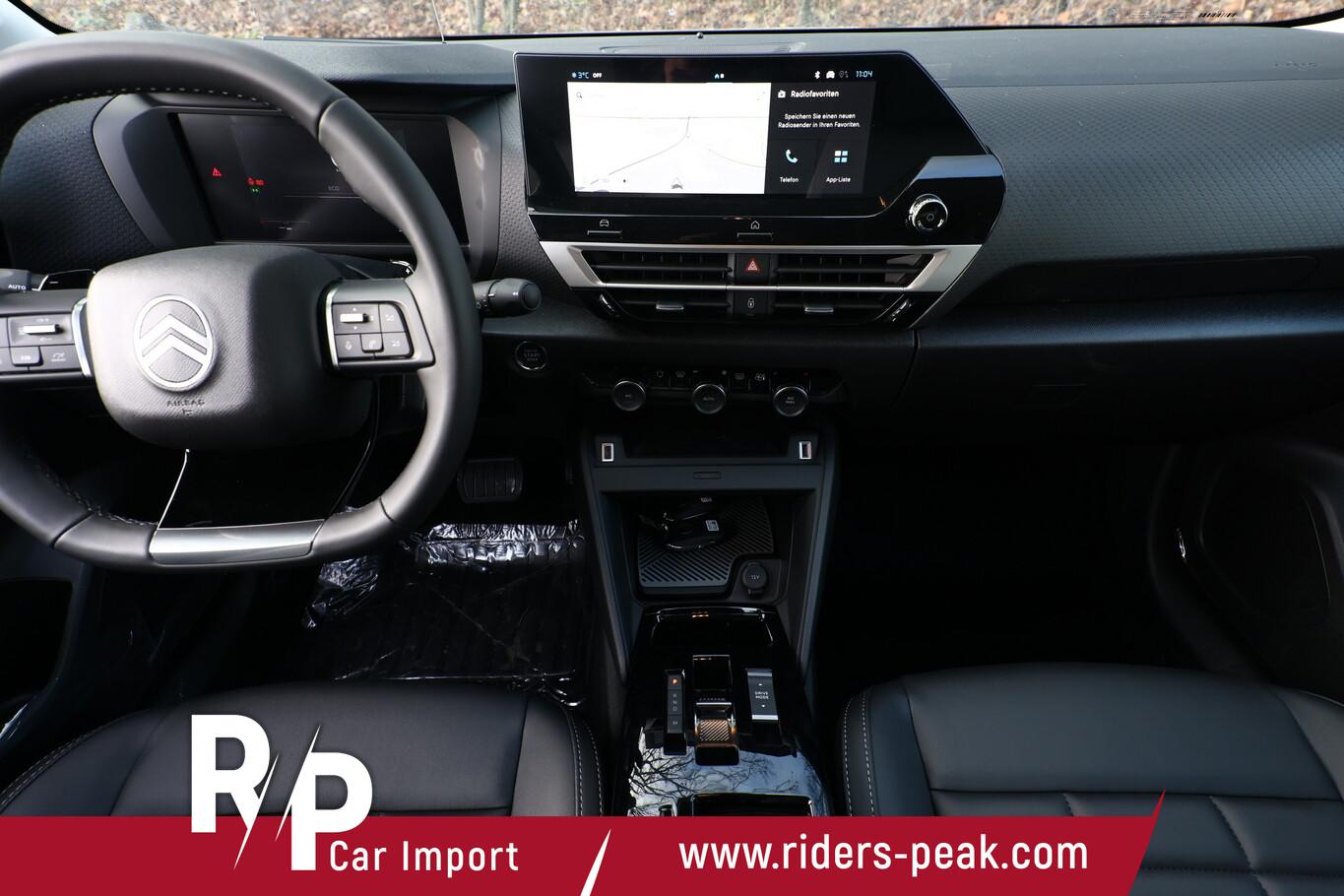 Techno-Paket (Fahrassistenz-System: Highway Drive Assist / Induktionsladeschale für Smartphone (Wireless Charging) / Kamerasystem Vision 360 Grad / Nebelscheinwerfer LED mit Abbiegelicht), Advanced Comfort Sitze, Außenspiegelkappen schwarz, Fahrmodusschalter, Fensterheber elektrisch vorn, Head-up-Display, Isofix-Aufnahmen für Kindersitz an Rücksitz, Lendenwirbelstütze Sitz vorn links, Leseleuchten vorn und hinten, LM-Felgen 18", Navigationssystem inkl. 10"-HD-Touchscreen, Notrufsystem eCall, Reifen 195/60 R18, Schadstoffarm nach Abgasnorm Euro 6e (EU6 EA), Sitzbezug / Polsterung: Stoff, Sitze vorn höhenverstellbar, Smartphone-Schnittstelle (Apple CarPlay & Android Auto), USB-Schnittstelle (Typ C), Drive-Assist-Paket (Warnanlage für Sicherheitsgurte / Fahrassistenz-System: Aktiver Notbrems-Assistent (Active Safety Brake) / Fahrassistenz-System: Kollisionswarnsystem / Adaptive Geschwindigkeitsregelanlage (ACC) inkl. Stop&Go / Fahrassistenz-System: Verkehrszeichenerkennung Plus (Geschwindigkeits-Regel-/Begrenzeranlage) / Frontkamera / Einschaltautomatik für Fahrlicht / Fahrassistenz-System: Fernlichtassistent / Fahrassistenz-System: Totwinkel-Assistent / Scheibenwischer mit Regensensor / Fahrassistenz-System: Aufmerksamkeits-Assistent (Müdigkeitserkennungs-Sensor) / Fahrassistenz-System: Spurassistent (AFIL)), Elektron. Stabilitäts-Programm (ESP) (Antischlupfregelung (ASR)), Scheinwerfer Eco-LED (Einschaltautomatik für Fahrlicht / Scheibenwischer mit Regensensor), Einparkhilfe vorn und hinten inkl. Rückfahrkamera mit Top Rear Vision und Parksensoren seitlich (Rückfahrkamera mit Top Rear Vision / Einparkhilfe vorn und hinten), Comfort Federung (Citroen Advanced), Innenspiegel mit Abblendautomatik, Karosserie: 5-türig, Koffer-/Laderaumboden variabel (Moduboard), Kombiinstrument digital (7 Zoll), Mittelkonsole mit Ablagefach, Otto-Partikelfilter (GPF), Parkbremse elektrisch, Rücksitz mit Armlehne, Freisprecheinrichtung Bluetooth, USB-Anschlüsse (Typ A, 2-fach), Anti-Blockier-System (ABS), Getriebe Automatik - Doppelkupplungsgetriebe (6-Stufen, Hybrid), Klimaautomatik, Fahrer-/Beifahrerseite getrennt regelbar, Airbag Beifahrerseite abschaltbar, Fensterheber elektrisch hinten, Kopf-Airbag-System, Mittelarmlehne vorn, Seitenairbag vorn, Seitenscheiben hinten und Heckscheibe dunkel getönt, Zentralverriegelung / Startanlage Keyless System, Bordcomputer, Fahrassistenz-System: Berganfahrhilfe, Lenkrad (Leder), Außenspiegel elektr. verstell-, heiz- und anklappbar, Tagfahrlicht LED, Reifendruck-Kontrollsystem