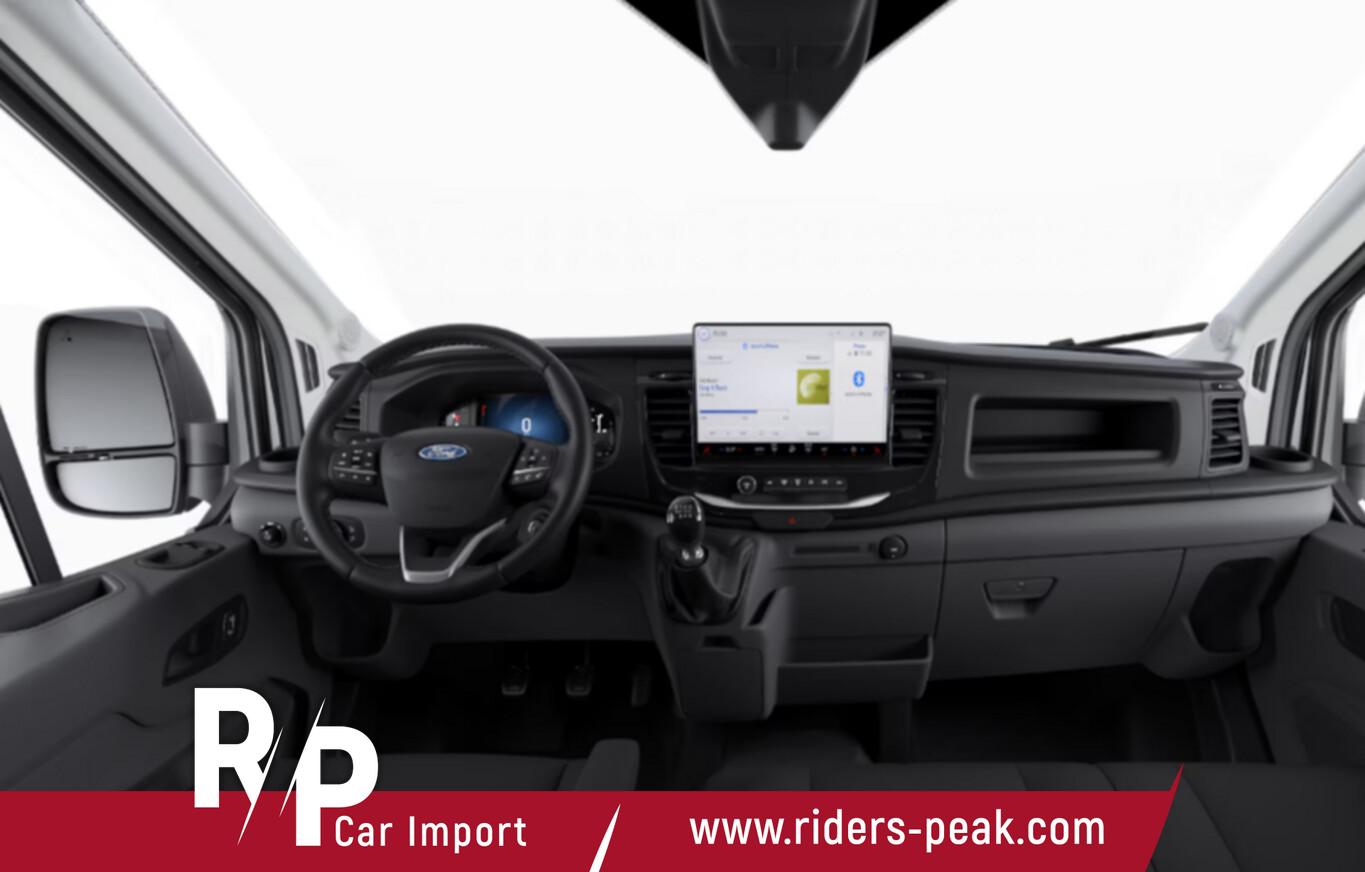 Laderaumschutz-Paket, Stahlfelgen 6,5x16, Verkleidung im Lade-/FG-Raum: hoch, Bodenbelag: Vinyl im Lade-/Fahrgastraum, DPF-Regenerator manuell, Reserverad in Fahrbereifung, Feststellbremse elektrisch, Sitz-Paket 9 / 15 Fahrersitz (4-fach verstellbar) - Beifahrerdoppelsitz inkl. Sitzheizung, Stoff (Sitze im Fahrerhaus: Fahrersitz mit Lendenwirbelstütze / Armlehne Fahrersitz), Laderaumtrennwand Metall, Frontscheibe heizbar, Reifendruck-Kontrollsystem, Schmutzfänger vorn, 3 Bremsleuchte, 4 Lautsprecher, Anhängerkupplung Vorbereitung, Audio-/Radio-Fernbedienung am Lenkrad, Audiosystem Ford SYNC 4 mit 12" Touchscreen, Audiosystem: Radio mit USB und Bluetooth-Freisprecheinrichtung, Elektr. Fensterheber vorn, Fahrassistent-System: Fernlichtassistent, Fahrassistenz-System: Notrufsystem, Fahrassistenz-System: Pre-Collision-System, Fahrassistenz-System: Spurhalteassistent, Fahrassistenz-System: Verkehrszeichenerkennung, Falschfahrer-Warnfunktion, Geschwindigkeits-Regelanlage (Tempomat), Handschuhfach abschließbar, Kopfstützen vorn verstellbar, Laderaumleuchte, Lenkrad (Leder), Leseleuchten, Manueller DPF Regenerator, Nebelscheinwerfer, Parkpilotsystem vorn und hinten, Rückfahrkamera, Rückfahrwarnsignal, Seitliche Begrenzungsleuchten, Sicherheitsgurt-Kontrollsystem, Technologie-Paket 2, Verzurrösen, Ablage im Dachhimmel Fahrerhaus, Anhänger-Stabilisierungs-Programm (TSA), Heckflügeltüren ohne Verglasung (Öffnungswinkel 256 Grad), Heizung mit Umluftschaltung, Karosserie/Aufbau: Kasten Grossraum Standard, Karosserievariante: Hochdach, Motor 2,0 Ltr. - 121 kW EcoBlue KAT, Radstand 3750 mm, Scheibenwischer mit Intervallschaltung, regulierbar, Schiebetür Lade-/Fahrgastraum rechts, Schmutzfänger hinten, Zul. Gesamtgewicht 3,50 t, Anti-Blockier-System (ABS), Fahrassistenz-System: Notbrems-Assistent, Antriebsart: Heckantrieb, Elektron. Stabilitäts-Programm (ESP), Getriebe 6-Gang, Klimaautomatik, Verzurrösen (12), Zentralverriegelung mit Fernbedienung, Bordcomputer, Wärmeschutzverglasung leicht getönt, Fahrassistenz-System: Berganfahr-Assistent, Außenspiegel elektr. verstell- und heizbar, Blinkleuchte in Außenspiegel integriert, Tagfahrlicht, Rußpartikelfilter, Start/Stop-Anlage