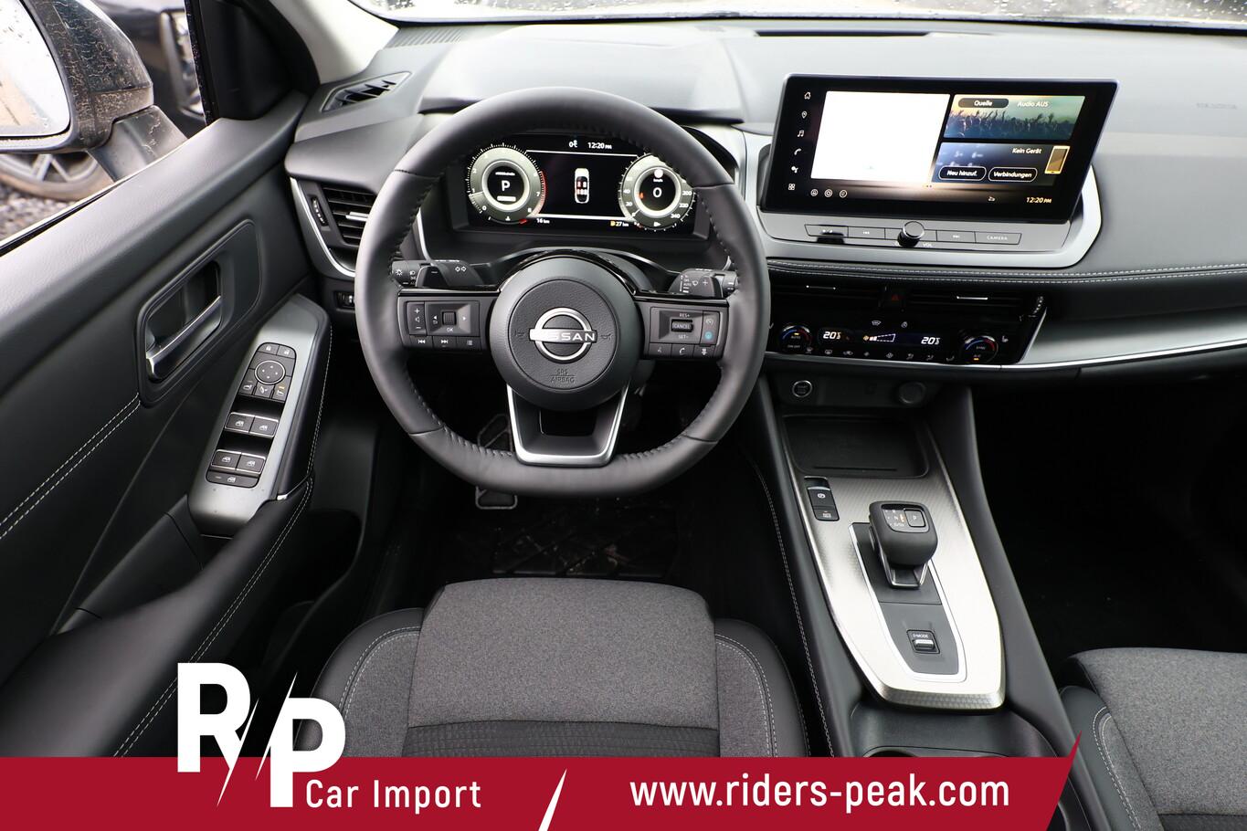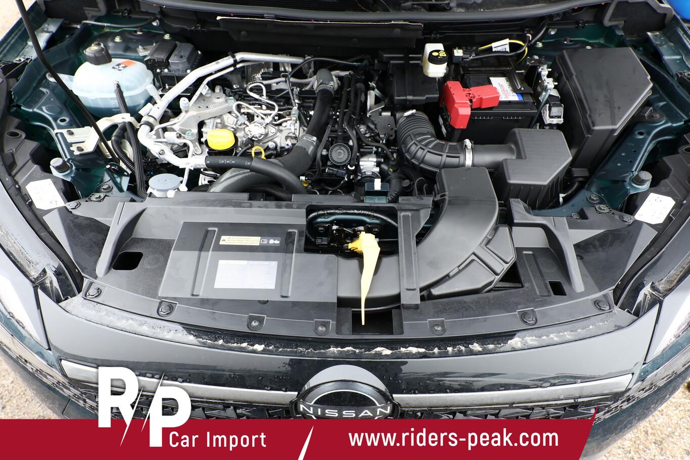 Winter-Paket (Lenkrad heizbar / Sitzheizung vorn / Frontscheibe heizbar), 6 Lautsprecher, Dachträger silber, Fahrassistenz-System: Bremsassistent, Fahrassistenz-System: Spurverlassenswarnung, Fahrassistenz-System: Stau-Pilot, Getränkehalter vorn, Induktionsladeschale für Smartphone, Lenkrad heizbar, LM-Felgen 18 Zoll, Nissan Herstellgarantie 3 Jahre / 100.000km, Radioempfang digital (DAB), Reifen 235/55 R18, Wegfahrsperre, Zentralverriegelung mit Fernbedienung, Ausstattungs-Paket: Nissan Connect Navigationssystem mit Around View Monitor (Smartphone kabellose Schnittstelle (Apple CarPlay & Android Auto) / Sprachbediensystem Spracherkennung / Kamerasystem Around View / Service-System: Google Services / Service-System: Nissan Connect Services / Einparkhilfe vorn und hinten), Schließ-/Startsystem intelligent key (Keyless-Entry / Start-Stop-Knopf), Lenkrad (Leder) mit Multifunktion (Audiobedienung am Lenkrad), Ambiente-Beleuchtung, Dachantenne im Haifischflossen-Design, Elektr. Bremskraftverteilung (EBD), Geschwindigkeits-Begrenzeranlage, Innenspiegel mit Abblendautomatik, Instrumentenanzeige TFT-Farbdisplay (12,3 Zoll), Karosserie: 5-türig, Kofferraumbeleuchtung, Lendenwirbelstütze Sitz vorn links, elektr. verstellbar, Lenksäule (Lenkrad) höhen-/längsverstellbar, Mild-Hybrid 116 kW (Motor 1,3 Ltr. - 116 kW DIG-T MHEV), Mittelarmlehne hinten mit Getränkehalter, Notbrems-Warnblinkautomatik, Parkbremse elektrisch, Schalt-/Wählhebelgriff Leder, Scheibenwischer mit Intervallschaltung, Sitz vorn links höhenverstellbar, Sitz vorn rechts höhenverstellbar, Sonnenblenden mit Spiegel (beleuchtet), Steckdose (12V-Anschluß) in Mittelkonsole, Touchscreen-Farbdisplay (12,3 Zoll), Navigationssystem, USB-Anschluss im Fond, USB-Schnittstelle, Anti-Blockier-System (ABS), Fahrassistenz-System: Moving Object Detection (MOD, Fußgängererkennung und bewegliche Objekterkennung), Antriebsart: Frontantrieb, Elektron. Stabilitäts-Programm (ESP), Getriebe Automatik stufenlos - X-Tronic-CVT, Klimaautomatik 2-Zonen, Airbag Fahrer-/Beifahrerseite, Fensterheber elektrisch vorn + hinten, Isofix-Aufnahmen für Kindersitz, Rücksitz geteilt/klappbar, Seitenairbag, Verglasung hinten abgedunkelt, Fahrmodusschalter, Around View Monitor (360° Umgebungsansicht), Auto-Hold-Funktion, Fahrassistenz-System: Auffahrwarnsystem (Forward Collision Warning, FCW), Fahrassistenz-System: Berganfahr-Assistent, Fahrassistenz-System: Verkehrszeichenerkennung, Geschwindigkeits-Regelanlage (Tempomat) mit Abstandsregelung, Fahrassistenz-System: Sicherheitssystem ERA GLONASS mit automatischem Notruf, Lenkrad mit Schaltwippen/-tasten, Außenspiegel elektr. anklappbar, Außenspiegel elektr. verstell- und heizbar, Automatische Fahrlichtschaltung, Fahrassistenz-System: Fernlichtassistent, Fahrassistenz-System: Totwinkel-Assistent, Heckleuchten LED, Scheibenwischer mit Regensensor, Scheinwerfer LED, Fahrassistenz-System: aktiver Spurhalteassistent, mit korrigierendem Bremseingriff, Fahrassistenz-System: Autonomer Notbrems-Assistent, Fahrassistenz-System: Müdigkeitserkennungs-Sensor, Fahrassistenz-System: Querverkehrs-Assistent Heck (Rear Cross Traffic Alert, RCTA), Reifendruck-Kontrollsystem, Start/Stop-Anlage