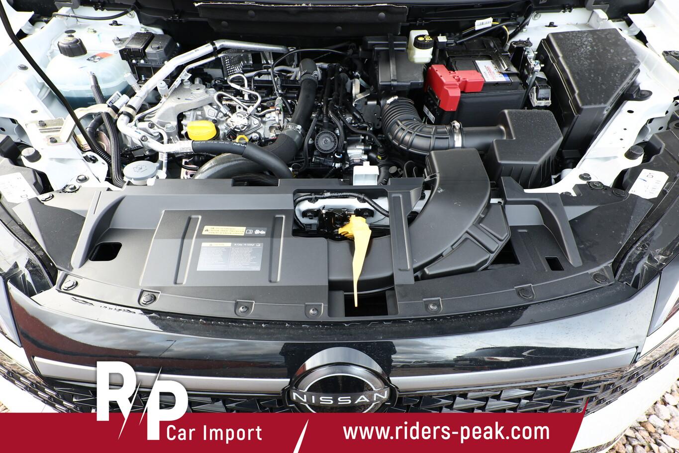 Komfort-Paket (1) (Außenspiegel elektr. verstellbar, mit Memoryfunktion rechts / Lendenwirbelstütze Sitz vorn rechts / Head-up-Display / Heckklappe/-Deckel elektr. betätigt (Öffnung, sensorgesteuert) / Außenspiegel elektr. verstellbar, mit Memoryfunktion links / Außenspiegel mit autom. Absenkfunktion), Panorama-Glasdach, Einparkhilfe vorne & hinten, Fahrassistenz-System: Spurverlassenswarnung, Induktionsladeschale für Smartphone, Innenspiegel rahmenlos mit Abblendautomatik, LM-Felgen 20 Zoll, Mehrlenker-Hinterradaufhängung, Nissan Herstellergarantie: 3 Jahre Garantie oder 100.000 km, Schadstoffarm nach Abgasnorm Euro 6e (EU6 EA), Smartphone kabellose Schnittstelle (Apple CarPlay & Android Auto), Schließ-/Startsystem intelligent key (Keyless-Entry / Start-Stop-Knopf), Lenkrad (Leder) mit Multifunktion (Audiobedienung am Lenkrad), Winter-Paket (Lenkrad heizbar / Sitzheizung vorn / Frontscheibe heizbar), 3. Bremsleuchte, Ambiente-Beleuchtung, Dachantenne im Haifischflossen-Design, Dachhimmel schwarz, Geschwindigkeits-Begrenzeranlage, Instrumentenanzeige TFT-Farbdisplay (12,3 Zoll), Karosserie: 5-türig, Lendenwirbelstütze Sitz vorn links, elektr. verstellbar, Mild-Hybrid 116 kW (Motor 1,3 Ltr. - 116 kW DIG-T MHEV), Mittelarmlehne hinten mit Getränkehalter, Notbrems-Warnblinkautomatik, Parkbremse elektrisch, Radstand 2666 mm, Schalt-/Wählhebelgriff Leder, Sitz vorn links höhenverstellbar, Sitz vorn rechts höhenverstellbar, Sonnenblenden mit Spiegel (beleuchtet), Touchscreen-Farbdisplay (12,3 Zoll), Navigationssystem, USB-Anschluss im Fond, USB-Schnittstelle, Anti-Blockier-System (ABS), Fahrassistenz-System: Moving Object Detection (MOD, Fußgängererkennung und bewegliche Objekterkennung), Antriebsart: Frontantrieb, Elektron. Stabilitäts-Programm (ESP), Getriebe Automatik stufenlos - X-Tronic-CVT, Klimaautomatik 2-Zonen, Airbag Fahrer-/Beifahrerseite, Kopf-Airbag-System, Rücksitz geteilt/klappbar, Seitenairbag, Fahrmodusschalter, Dachreling schwarz, Around View Monitor (360° Umgebungsansicht), Auto-Hold-Funktion, Fahrassistenz-System: Auffahrwarnsystem (Forward Collision Warning, FCW), Fahrassistenz-System: Berganfahr-Assistent, Fahrassistenz-System: Verkehrszeichenerkennung, Geschwindigkeits-Regelanlage (Tempomat) mit Abstandsregelung, Außenspiegel elektr. anklappbar, Außenspiegel elektr. verstell- und heizbar, Automatische Fahrlichtschaltung, Blinkleuchten LED in Außenspiegel integriert, Fahrassistenz-System: Adaptiver Fernlichtassistent, Fahrassistenz-System: Totwinkel-Assistent, Heckleuchten LED (Super rot), Scheibenwischer mit Regensensor, Scheinwerfer Voll-LED, Tagfahrlicht LED, Fahrassistenz-System: aktiver Spurhalteassistent, mit korrigierendem Bremseingriff, Fahrassistenz-System: Autonomer Notbrems-Assistent, Fahrassistenz-System: Müdigkeitserkennungs-Sensor, Diebstahl-Warnanlage