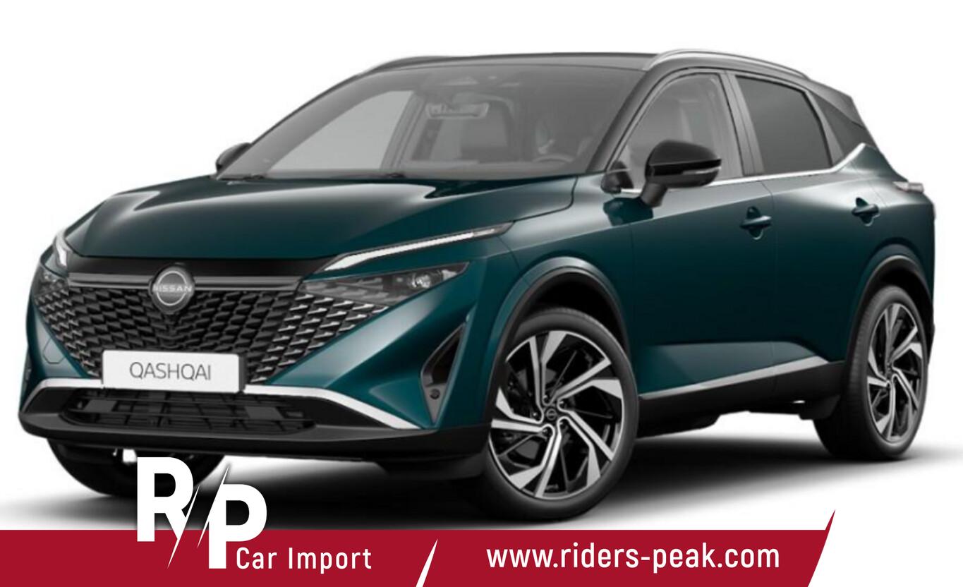 LM-Felgen 8x20, Allradlenkung, Garantie 3 Jahre oder 100.000 km, Interieur Dekor in Alcantara, Mehrlenker-Hinterradaufhängung, Mittelkonsole mit Ablagefach, Reifen 235/45 R20, Sicherheitsgurt-Kontrollsystem, Sitz vorn links mit Massagefunktion, Sitzbezug / Polsterung: Premium-Leder Nappa mit Alcantara-Einsätzen, Business-Paket (Induktionsladeschale für Smartphone / Heckklappe/-Deckel elektr. betätigt (Öffnung, sensorgesteuert)), Design-Paket (Dachreling silber / Panorama-Glasdach), Komfort-Paket (1) (Außenspiegel elektr. verstellbar, mit Memoryfunktion rechts / Lendenwirbelstütze Sitz vorn rechts / Sitz vorn links elektr. verstellbar (mit Memory) / Head-up-Display / Heckklappe/-Deckel elektr. betätigt (Öffnung, sensorgesteuert) / Außenspiegel elektr. verstellbar, mit Memoryfunktion links / Außenspiegel mit autom. Absenkfunktion), Sound-System BOSE Premium (10 Lautsprecher), Technologie-Paket Getriebe Automatik (Fahrassistenz-System: Autonomer Lenk-Assistent für selbstständiges Spurhalten / Fahrassistenz-System: ProPilot mit Navi-Link / Head-up-Display / Fahrassistenz-System: Autom. Distanzregelung mit vorausschauender Geschw.-Regelung / Fahrassistenz-System: Stauassistent inkl. Stop&Go-Funktion), Ausstattungs-Paket: Nissan Connect Navigationssystem mit Around View Monitor (Smartphone kabellose Schnittstelle (Apple CarPlay & Android Auto) / Sprachbediensystem Spracherkennung / Kamerasystem Around View / Service-System: Google Services / Service-System: Nissan Connect Services / Einparkhilfe vorn und hinten), Schließ-/Startsystem intelligent key (Keyless-Entry / Start-Stop-Knopf), Lenkrad (Leder) mit Multifunktion (Audiobedienung am Lenkrad), Winter-Paket (Lenkrad heizbar / Sitzheizung vorn / Frontscheibe heizbar), Ambiente-Beleuchtung erweitert, Gepäck-/Laderaum-Unterteilung (Flexi-Board), Geschwindigkeits-Begrenzeranlage, Innenspiegel mit Abblendautomatik, Instrumentenanzeige TFT-Farbdisplay (12,3 Zoll), Karosserie: 5-türig, Lendenwirbelstütze Sitz vorn links, elektr. verstellbar, Mild-Hybrid 116 kW (Motor 1,3 Ltr. - 116 kW DIG-T MHEV), Mittelarmlehne hinten mit Getränkehalter, Otto-Partikelfilter (OPF), Parkbremse elektrisch, Radstand 2666 mm, Schalt-/Wählhebelgriff Leder, Sitz vorn rechts mit Massagefunktion, Sonnenblenden mit Spiegel (beleuchtet), Stylingelement Stoßfänger vorn Chrom-Optik, Touchscreen-Farbdisplay (12,3 Zoll), Navigationssystem, USB-Anschluss im Fond, Anti-Blockier-System (ABS), Fahrassistenz-System: Moving Object Detection (MOD, Fußgängererkennung und bewegliche Objekterkennung), Antriebsart: Allradantrieb, Elektron. Stabilitäts-Programm (ESP), Getriebe Automatik stufenlos - X-Tronic-CVT, Klimaautomatik 2-Zonen, Airbag Fahrer-/Beifahrerseite, Fensterheber elektrisch vorn + hinten, Isofix-Aufnahmen für Kindersitz, Kopf-Airbag-System, Rücksitz geteilt/klappbar, Seitenairbag, Sitz vorn rechts elektr. verstellbar (mit Memory), Verglasung hinten abgedunkelt, Fahrmodusschalter, Around View Monitor (360° Umgebungsansicht), Auto-Hold-Funktion, Fahrassistenz-System: Auffahrwarnsystem (Forward Collision Warning, FCW), Fahrassistenz-System: Berganfahr-Assistent, Fahrassistenz-System: Verkehrszeichenerkennung, Geschwindigkeits-Regelanlage (Tempomat) mit Abstandsregelung, Fahrassistenz-System: Sicherheitssystem ERA GLONASS mit automatischem Notruf, Außenspiegel elektr. anklappbar, Außenspiegel elektr. verstell- und heizbar, Automatische Fahrlichtschaltung, Blinkleuchten LED in Außenspiegel integriert, Fahrassistenz-System: Adaptiver Fernlichtassistent, Fahrassistenz-System: Totwinkel-Assistent, Heckleuchten LED (Super rot), Scheibenwischer mit Regensensor, Scheinwerfer Voll-LED, Tagfahrlicht LED, Fahrassistenz-System: aktiver Spurhalteassistent, mit korrigierendem Bremseingriff, Fahrassistenz-System: Autonomer Notbrems-Assistent, Fahrassistenz-System: Müdigkeitserkennungs-Sensor, Fahrassistenz-System: Querverkehrs-Assistent Heck (Rear Cross Traffic Alert, RCTA), Reifendruck-Kontrollsystem, Diebstahl-Warnanlage