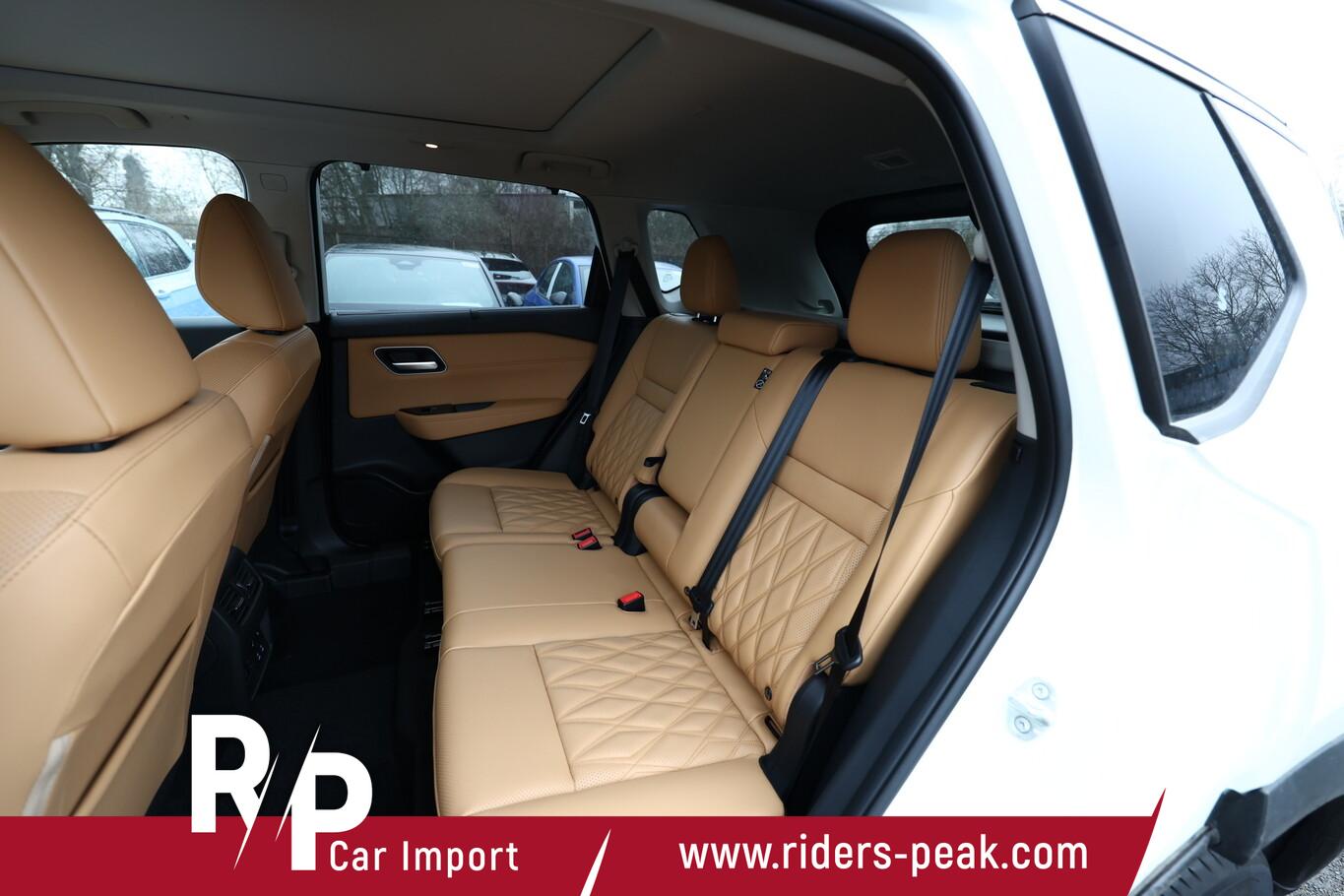 Panorama-Glasdach, Sound-System BOSE Premium (10 Lautsprecher), 2 USB-Anschlüsse vorn, Digitaler Innenspiegel mit Kamerafunktion, Einparkhilfe seitlich, Fahrassistenz-System: Kreuzungsassistent, Fahrmodi: Standard, Sport, Eco, Snow, Off-Road, Frontscheibe heizbar, Geschwindigkeits-Begrenzeranlage, Klimaautomatik 3-Zonen, Lendenwirbelstützen vorn elektr. verstellbar, Lenkrad heizbar, LM-Felgen 20", Reifen 255/45 R20, Sitz vorn links und rechts höhenverstellbar, Sitzbezug / Polsterung: Nappaleder, Sitzheizung vorn und hinten, Sonnenschutzrollo an Türscheiben hinten, Fahrassistenz-System: ProPilot mit Navi-Link (Fahrassistenz-System: Autonomer Lenk-Assistent für selbstständiges Spurhalten / Fahrassistenz-System: Autom. Distanzregelung mit vorausschauender Geschw.-Regelung / Fahrassistenz-System: Stauassistent inkl. Stop&Go-Funktion), Ausstattungs-Paket: Nissan Connect Navigationssystem (Radioempfang digital (DAB) / Touchscreen-Farbdisplay (12,3 Zoll) / Bluetooth-Schnittstelle / Freisprechanlage Bluetooth / Navigationssystem / Smartphone Schnittstelle (Apple CarPlay & Android Auto) / Sprachbediensystem Spracherkennung / Around View Monitor (360° Umgebungsansicht) / Kamerasystem Around View / Service-System: Amazon Alexa / Service-System: Google Services / Service-System: Nissan Connect Services), Scheinwerfer Voll-LED (Fahrassistenz-System: Adaptiver Fernlichtassistent), Ambiente-Beleuchtung Mittelkonsole, Ambiente-Beleuchtung Türverkleidung vorn, Elektr. Bremskraftverteilung (EBD), Elektromotor 150 kW (Hybridantrieb), Elektromotor mit Range Extender 157 kW (Motor 1,5 Ltr. - 116 kW), Fahrassistenz-System: ProPilot Park, Induktionsladeschale für Smartphone, Innenspiegel mit Abblendautomatik, Instrumentenanzeige TFT-Farbdisplay (12,3 Zoll), Karosserie: 5-türig, Otto-Partikelfilter (OPF), Parkbremse elektrisch, Radstand 2705 mm, USB-Anschluss im Fond, Anti-Blockier-System (ABS), Antriebsart: Allradantrieb, Elektron. Stabilitäts-Programm (ESP), Getriebe für Elektrofahrzeug, Airbag Fahrer-/Beifahrerseite, Isofix-Aufnahmen für Kindersitz, Keyless-Entry, Kopf-Airbag-System, Rücksitzbank verschiebbar, Rücksitzlehne geteilt (40:20:40), Schließ-/Startsystem intelligent key, Seitenairbag vorn, Seitenairbag vorn mitte (Center-Airbag), Sitz vorn links elektr. verstellbar (mit Memory), Sitz vorn rechts elektr. verstellbar (mit Memory), Verglasung hinten abgedunkelt, Fahrmodusschalter, Head-up-Display, Dachreling, Heckklappe/-Deckel elektr. betätigt (Öffnung, sensorgesteuert), Auto-Hold-Funktion, Fahrassistenz-System: Auffahrwarnsystem (Forward Collision Warning, FCW), Fahrassistenz-System: Verkehrszeichenerkennung, Rückfahrkamera, Fahrassistenz-System: Sicherheitssystem ERA GLONASS mit automatischem Notruf, Lenkrad (Leder) mit Multifunktion, Außenspiegel elektr. anklappbar, Außenspiegel elektr. verstell- und heizbar, Fahrassistenz-System: Totwinkel-Assistent, Heckleuchten LED, Licht- und Regensensor, Tagfahrlicht LED, Einparkhilfe hinten, Einparkhilfe vorn, Fahrassistenz-System: Intelligenter Parklenkassistent, Fahrassistenz-System: Autonomer Notbrems-Assistent, Fahrassistenz-System: Müdigkeitserkennungs-Sensor, Fahrassistenz-System: Querverkehrs-Assistent Heck (Rear Cross Traffic Alert, RCTA), Reifendruck-Kontrollsystem