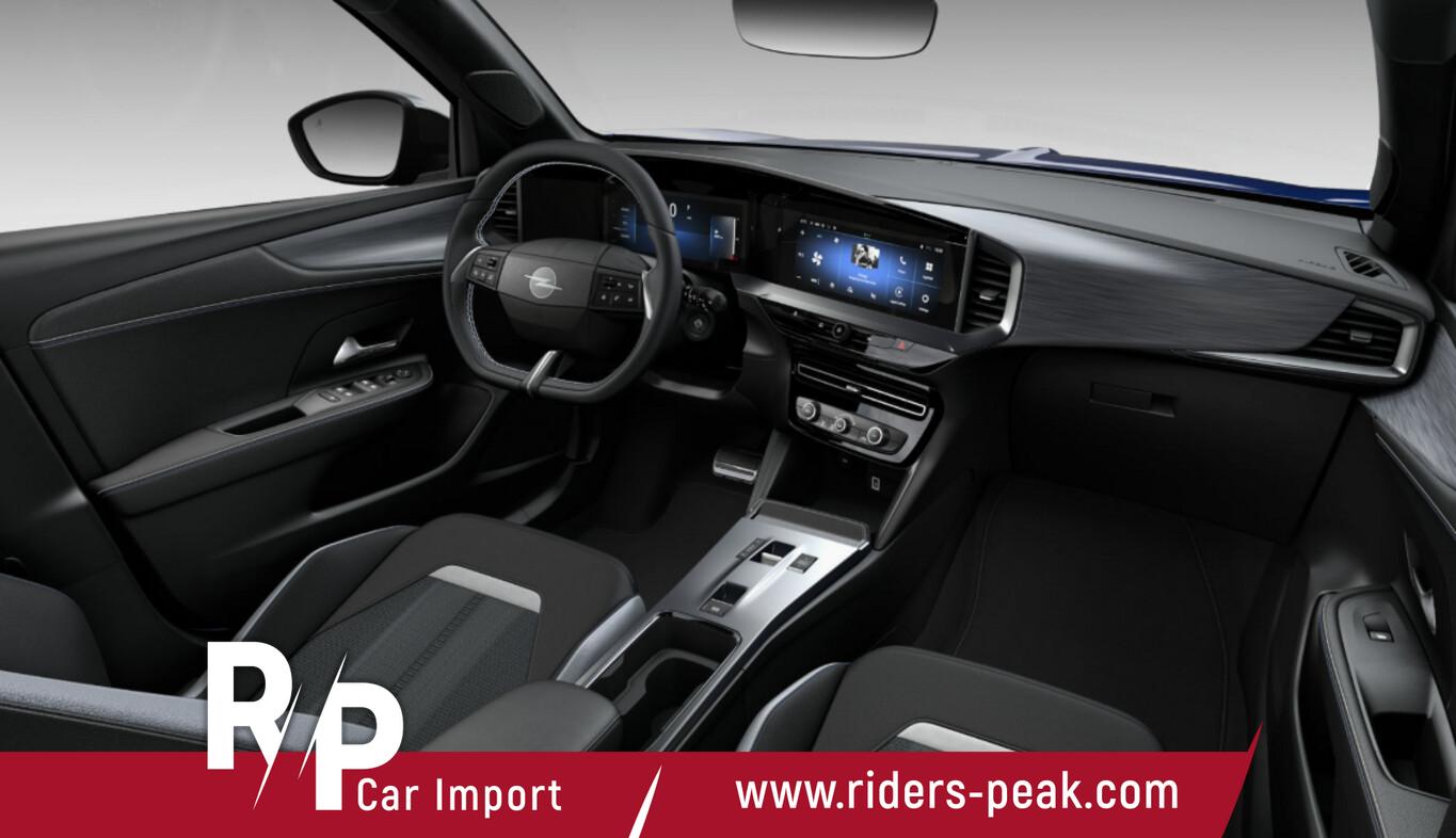 Komfort-Paket (Gepäck-/Laderaumboden doppelt / Innenspiegel rahmenlos mit Abblendautomatik / Lenkrad heizbar / Sonnenblenden mit Spiegel (beleuchtet) / Sitzheizung vorn / Lenkrad (Leder, vegan) mit Multifunktion), 10"-Touchscreen, 2 USB-Ladeschnittstellen an der Mittelarmlehne, hinten, Außenspiegel elektr. verstell- und heizbar, Fahrassistenz-System: Fußgängererkennung, Fahrassistenz-System: Spurhalteassistent, Geschwindigkeits-Begrenzeranlage, Geschwindigkeits-Regelanlage (Tempomat), Kombiinstrument digital (10"), LM-Felgen 6,5x17, Mittelarmlehne vorn, Reifen 215/60 R17, Schadstoffarm nach Abgasnorm Euro 6e (EU6 EA), Scheinwerfer Eco-LED, Audiosystem Multimedia (6 Lautsprecher / Smartphone Schnittstelle (Apple CarPlay & Android Auto)), Black-Paket (Dach, Design-Ausführung (schwarz) / Kühlergrill, Opel Vizor, Rahmen in Hochglanz-Schwarz / Schriftzug Heckklappe Schwarz, Hochglanz), Sicht-Paket (Innenspiegel mit Abblendautomatik / Einschaltautomatik für Fahrlicht mit Tunnelerkennung / Scheibenwischer mit Regensensor), Parkpilotsystem hinten (Rückfahrkamera mit 180° Umgebungsansicht), Dach Kontrast-Lackierung, Fahrzeugschlüssel (2) beide klappbar, Karosserie: 5-türig, Mild-Hybrid 107 kW (Motor 1,2 Ltr. - 100 kW), Radstand 2557 mm, Anti-Blockier-System (ABS), Antriebsart: Frontantrieb, Elektron. Stabilitäts-Programm Plus (ESP), LM-Felgen 6,5x17 (5-Doppelspeichen, Bicolor), Getriebe Automatik - Doppelkupplungsgetriebe (6-Stufen, Hybrid), Klimaautomatik, Sitzbezug / Polsterung: Stoff / Ledernachbildung, Wärmeschutzverglasung hinten abgedunkelt (Solar-Protect), Fahrassistenz-System: Verkehrszeichenerkennung, Fahrassistenz-System: Fernlichtassistent, Heckleuchten LED, Tagfahrlicht LED, Fahrassistenz-System: Müdigkeitserkennungs-Sensor