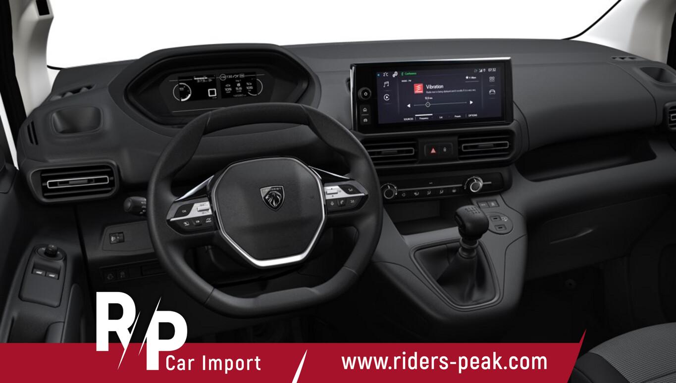 Infotainment-System "All In One" mit 10" Touchscreen, DAB, Bluetooth-Schnittstelle, Reserverad in Fahrbereifung, 4 Lautsprecher, Bluetooth-Freisprecheinrichtung, Fahrassistenz-System: Aktiver Notbrems-Assistent, Fahrassistenz-System: Multikollisionsbremse, Fahrassistenz-System: Spurhalteassistent, Gurtwarnanlage, Kombiinstrument digital (monochrom), Kraftstofftank: 53 Liter, Multifunktionslenkrad, Navigation in Verbindung mit dem Smartphone (über Apple Carplay / Android Auto /...), Smartphone-Schnittstelle (Apple CarPlay / Android Auto), Sommerreifen 195/65 R15, Stahlfelgen 15 Zoll, USB-Schnittstelle, Verzurrösen (6) im Laderaum, Zentralverriegelung mit Fernbedienung, Elektron. Stabilitäts-Programm (ESP, Bosch) (Antischlupfregelung (ASR)), Fensterheber elektrisch vorn (Fensterheber elektrisch vorn links / Fensterheber elektrisch vorn rechts), Safety-Paket (Fahrassistenz-System: Verkehrszeichenerkennung / Geschwindigkeits-Regelanlage (Tempomat) inkl. Geschwindigkeits-Begrenzeranlage / Einschaltautomatik für Fahrlicht / Fahrassistenz-System: Automatische Fahrlichtschaltung inkl. Fernlichtassistent / Fahrassistenz-System: Müdigkeitserkennungs-Sensor), Außenspiegel mit Abdeckkappen schwarz, Beifahrereinzelsitz, Heckflügeltüren ohne Verglasung, Karosserie/Aufbau: Kasten, Lenksäule (Lenkrad) verstellbar, Motor 1,5 Ltr. - 75 kW Blue-HDI FAP, Nutzlast 650 kg, Radstand 2785 mm, Schiebetür rechts, SCR-System (AdBlue-Technologie), Seitenschutzleisten schwarz, Sitz vorn links neigungsverstellbar, Sitzbezug / Polsterung: Stoff Curitiba, Teppichboden im Fahrgast-/Laderaum (1.Sitzreihe), Anti-Blockier-System (ABS), Antriebsart: Frontantrieb, Getriebe 6-Gang, Klimaanlage, Airbag Beifahrerseite, Airbag Beifahrerseite abschaltbar, Airbag Fahrerseite, Kopf-Airbag-System, Laderaumtrennwand ohne Fenster, Seitenairbag vorn, Bordcomputer, Peugeot Connect-Box / SOS-Taste (Notruf für Lokalisierung Fahrzeug), Servolenkung elektrisch, Außenspiegel elektr. verstell- und heizbar, Scheinwerfer Eco-LED, Tagfahrlicht, Einparkhilfe hinten, Reifendruck-Kontrollsystem, Rußpartikelfilter, Start/Stop-Anlage