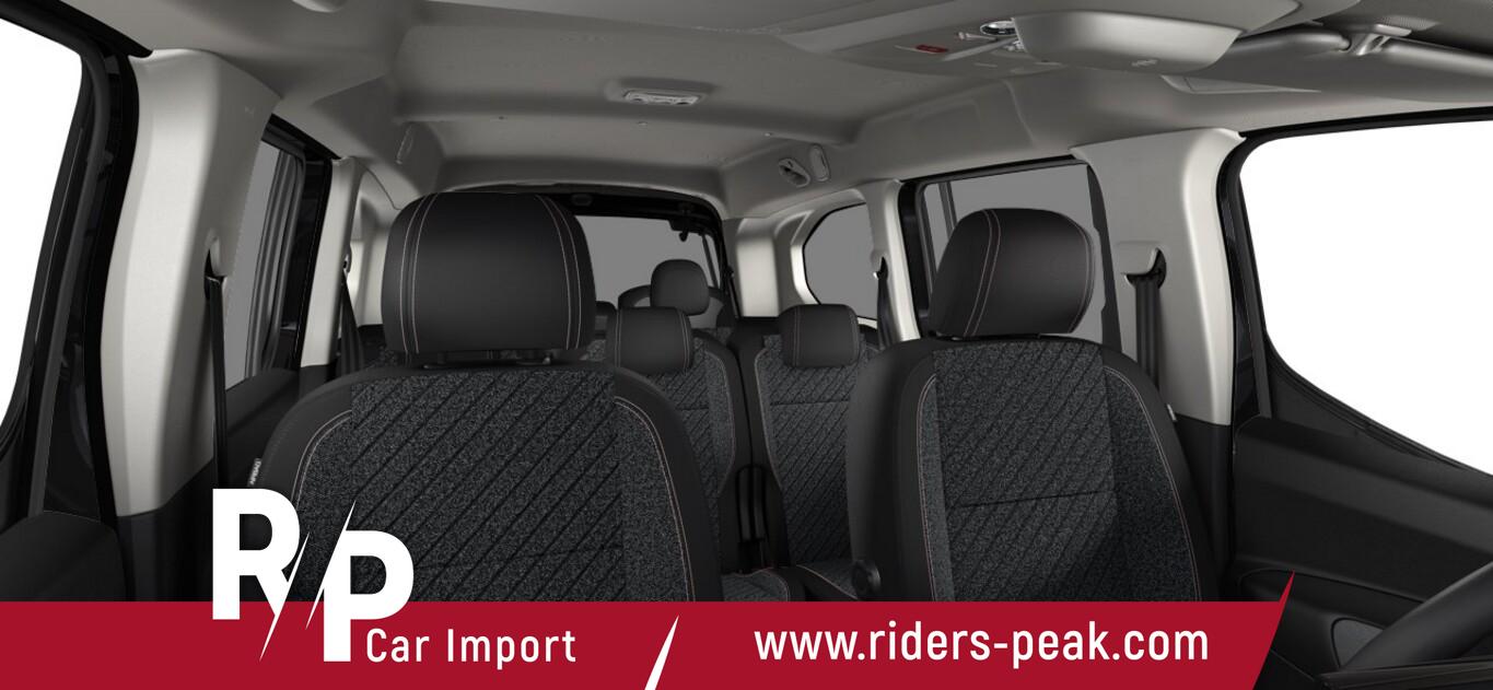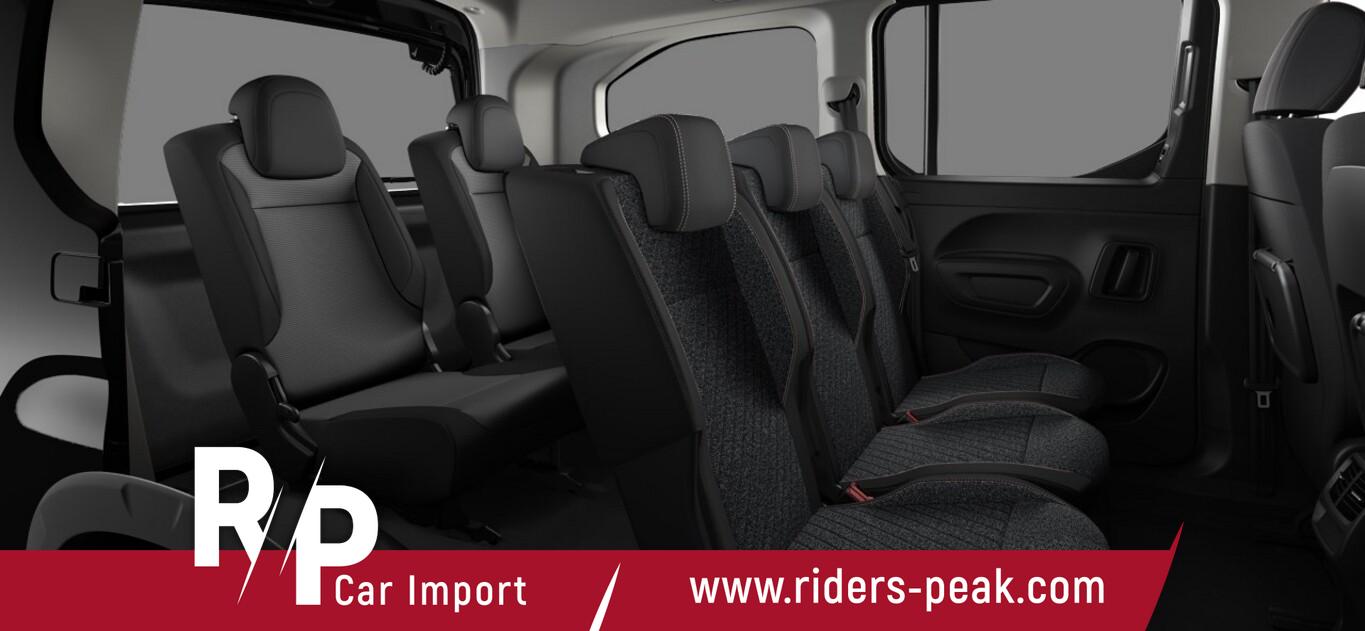 2 Zusatzsitze (7 Sitze), Style-Paket (Heckklappe, Scheibe ausstellbar / Heckscheibe aufstellbar / Heckscheibe heizbar / Heckscheibenwischer / Kindersicherung elektrisch / Schiebetüren links und rechts, mit elektr. Fensterhebern / Verkleidung Schiebetürschiene in Wagenfarbe / LM-Felgen 6,5x16 (Taranaki) / Fensterheber elektrisch hinten / Isofix-Aufnahmen für Kindersitz / Rücksitzbank klappbar 1/3-2/3 / Seitenscheiben hinten dunkel getönt und Heckscheibe stärker getönt / Dachreling schwarz, glänzend / Außenspiegel elektr. verstell-, heiz- und anklappbar), Anschlussgarantie 1 Jahre, Audiosystem mit 10 Zoll Farb-Touchscreen, Fensterheber elektrisch vorn, Lenkrad mit Multifunktion, Motor 1,5 Ltr. - 75 kW Blue-HDI FAP, Navigation in Verbindung mit dem Smartphone (über Apple Carplay / Android Auto /...), Reifen 205/60 R16, Schadstoffarm nach Abgasnorm Euro 6e (EU6 EA), Sicht-Paket (Einschaltautomatik für Fahrlicht / Scheibenwischer mit Regensensor), Sitz vorn links höhenverstellbar (Lendenwirbelstütze Sitz vorn links, verstellbar / Mittelarmlehne für Fahrersitz), Elektron. Stabilitäts-Programm (ESP, Bosch) (Antischlupfregelung (ASR)), Airbag Fahrer-/Beifahrerseite (Airbag Beifahrerseite), Sicherheits-Paket Plus (Fahrassistenz-System: Auffahrwarnsystem mit Bremsfunktion / Fahrassistenz-System: Verkehrszeichenerkennung / Fahrassistenz-System: Verkehrszeichenerkennung, erweitert (Geschwindigkeits-Regel-/Begrenzeranlage) / Geschwindigkeits-Regelanlage (Tempomat) inkl. Geschwindigkeits-Begrenzeranlage / Fahrassistenz-System: Fernlichtassistent / Fahrassistenz-System: Müdigkeitserkennungs-Sensor / Fahrassistenz-System: Spurassistent (AFIL) / Sicherheits-Paket), Ablagefach über den Sonnenblenden, Gepäckraumabdeckung / Rollo, Karosserie: 5-türig, Kombiinstrument digital (10,0 Zoll), Mobile Online Dienste Mirror Screen, Parkbremse elektrisch, Radstand 2975 mm, Anti-Blockier-System (ABS), Getriebe 6-Gang, Klimaanlage, Kopf-Airbag-System, Kopf-Airbag-System hinten, Fahrassistenz-System: Berganfahrhilfe, Lenkrad (Leder), Nebelscheinwerfer, Tagfahrlicht LED, Einparkhilfe hinten, Reifendruck-Kontrollsystem