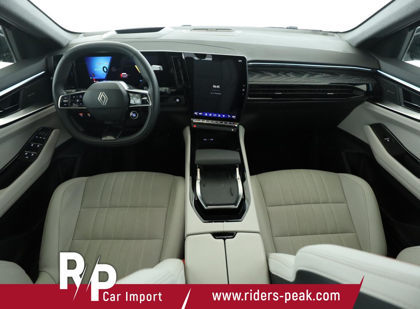 Panoramadach (vollverglaste Dachfläche), Ausstattungs-Paket: Harman-Kardon (12 Lautsprecher / Subwoofer / Infotainment-System: OpenR link (12" Touchscreen, Harman-Kardon Premium Sound, Subwoofer, Navigationssystem Google Maps)), Matrix-LED-Scheinwerfer, Head-up-Display, 4 Control advanced, Einparkhilfe vorn, hinten und seitlich, LM-Felgen 20", Reifen 235/45 R20, Vorbereitung Anhängerkupplung, Vorbereitung Diebstahl-Warnanlage, Motor 1,2 Ltr. - 96 kW E-Tech Hybrid (Hybrid 147 kW E-Tech (Motor 1,2 Ltr. - 96 kW)), Allradlenkung, Ambiente-Beleuchtung, Dachantenne im Haifischflossen-Design, Einstiegsbeleuchtung mit Logo Projektionsfunktion, Fahrassistenz-System: Ausstiegswarnung, Geräuschsimulator (Außensound), Heckscheibe heizbar, Induktionsladeschale für Smartphone, Innenspiegel mit Abblendautomatik, Ionisator zur Luftreinigung, Karosserie: 5-türig, Kombiinstrument digital (12,3 Zoll), Lenkrad heizbar, Lenksäule (Lenkrad) höhenverstellbar, Lenksäule (Lenkrad) längsverstellbar, Mittelkonsole mit Ablagefach, Parkbremse elektrisch mit Auto-Hold-Funktion, Radstand 2738 mm, Schaltpunktanzeige, Sicherheitsgurte vorn höhenverstellbar, Sitz vorn links mit Massagefunktion, Sitzausstattung: 7-Sitzer, Sonnenblenden mit Spiegel (beleuchtet), Warnanlage für Sicherheitsgurte, Anti-Blockier-System (ABS), Fahrassistenz-System: Aktiver Notbrems-Assistent mit Fußgängererkennung, Antischlupfregelung (ASR), Antriebsart: Frontantrieb, Elektron. Stabilitäts-Programm (ESP) mit Grip-Control, Getriebe Automatik - Multi-Mode (15-Stufen), Klimaautomatik 2-Zonen mit autom. Umluft-Control, 3.Sitzreihe im Fahrzeugboden versenkbar, Airbag Beifahrerseite abschaltbar, Airbag Fahrer-/Beifahrerseite, Fensterheber elektrisch vorn + hinten, Isofix-Aufnahmen für Kindersitz, Kopf-Airbag-System (Windowbag), Mittelarmlehne vorn, Rücksitzbank geteilt/klappbar (1/3-2/3), Rücksitzbank verschiebbar, Seitenairbag vorn, Seitenairbag vorn mitte (Center-Airbag), Sitz vorn links elektr. verstellbar (6-fach), Sitz vorn rechts elektr. verstellbar (6-fach), Sitzbezug / Polsterung: Kunstleder, Sitzheizung vorn, Verglasung hinten stark abgedunkelt, Zentralverriegelung mit Fernbedienung, Eco Mode (Fahrmodusschalter), Fahrassistenz-System: Multi-Sense (Fahrmodusschalter), Dachreling schwarz, Frontscheibe heizbar, Kofferraumdeckel / Heckklappe elektrisch betätigt (öffnen + schliessen, sensorgesteuert), Adaptive Geschwindigkeitsregelanlage (ACC), Fahrassistenz-System: Abstandswarner, Fahrassistenz-System: Berganfahr-Assistent (HSA), Fahrassistenz-System: Verkehrszeichenerkennung, Kamerasystem Around View 360°, Fahrassistenz-System: Sicherheitssystem mit automatischem Notruf (ERA GLONASS / eCall), Lenkrad (Leder), Lenkrad mit Schaltwippen/-tasten, Servolenkung elektrisch, Außenspiegel elektr. verstell-, heiz- und anklappbar, mit Memory, Dynamisches Kurvenlicht, Fahrassistenz-System: Fernlichtassistent, Fahrassistenz-System: Warnsystem Totwinkel (Blind Spot Warning, BSW), Heckleuchten LED mit Moiré-Effekt, Licht- und Regensensor, Tagfahrlicht LED, Fahrassistenz-System: Müdigkeitserkennungs-Sensor, Fahrassistenz-System: Querverkehrs-Assistent, Fahrassistenz-System: Spurhalteassistent Aktiv, Reifendruck-Kontrollsystem, Start/Stop-Anlage