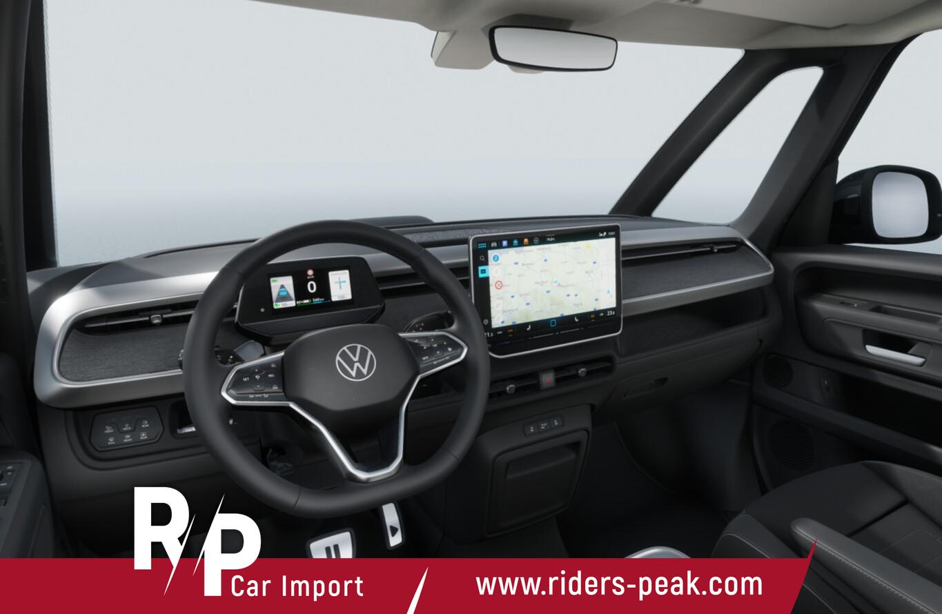 Ausstattungs-Paket: Easy Open & Close Plus (Fenster im Lade-/FG-Raum: - schiebbar, vorn links / Fenster im Lade-/FG-Raum: - schiebbar, vorn rechts / Schließ-/Startsystem Keyless Advanced mit Safesicherung / Umfeldleuchte in Heckklappe / Heckklappe elektr. betätigt Easy Open (öffnen + schliessen, sensorgesteuert) / Schiebetür Lade-/Fahrgastraum links elektr. betätigt Easy Open (sensorgesteuert) / Schiebetür Lade-/Fahrgastraum rechts elektr. betätigt Easy Open (sensorgesteuert)), Interieur-Paket Style Plus (Lenkrad schwarz) (Ambiente-Beleuchtung (30 Farben) / Sitzbezug / Polsterung: Stoff Seaqual / Sitze im Fahrerhaus: Fahrer- und Beifahrersitz Komfort / Sitze im Fahrerhaus: Fahrer- und Beifahrersitz mit Armlehnen beidseitig / Sitze vorn mit Massagefunktion / Sitze im Fahrerhaus: Fahrer- und Beifahrersitz elektr. verstellbar mit Memory, Einstiegshilfe links / Sitze im Fahrerhaus: Fahrer- und Beifahrersitz heizbar / Lenkrad heizbar (Leder) mit Multifunktion), Ausstattungs-Paket: Infotainment Plus (Sound-System Harman-Kardon (13 Lautsprecher, Subwoofer, 700 Watt) / Navigationsfunktion Discover Pro / Sprachassistent IDA / Head-up-Display), Ausstattungs-Paket: Komfort-Paket Plus (Außenspiegel schwarz lackiert und Türgriffe außen in Wagenfarbe / Gepäckraum-Abtrennung / Trennnetz / Gepäckraumabdeckung / Rollo / Innenspiegel mit Abblendautomatik / Mittelkonsole vorn variabel (ID.Buzz Box) / Multiflex-Board / Scheibenwaschdüsen beheizt / Multimedia-Schnittstelle 2 x USB (Typ C) vorn, USB-Ladeanschluß (Typ C) 1 x vorn, hinten / Klimaanlage Climatronic 3-Zonen inkl. Fondbedienung / Sitze im Fahrerhaus: Fahrer- und Beifahrersitz heizbar / Lenkrad heizbar (Leder) mit Multifunktion / Regensensor), LM-Felgen vorn/hinten: 8x19 / 9x19 (Tilburg, schwarz glanzgedreht), Fahrassistenz-Paket Plus inkl. Travel Assist und Umgebungsansicht inkl. Rückfahrkamera (Schließ-/Startsystem Keyless Advanced mit Safesicherung / Türgriffschalen außen beleuchtet / Rückfahrkamera mit 360° Umgebungsansicht (Area View) / Lenkrad heizbar (Leder) mit Multifunktion / Fahrassistenz-System: Memoryfunktion für Park Assist / Fahrassistenz-System: Parklenkassistent (Park Assist) inkl. Einparkhilfe vorn und hinten / Fahrassistenz-Paket: Travel Assist, Emergency Assist und Lane Assist / Diebstahl-Warnanlage + Innenraumüberwachung / Abschleppschutz + Back-up-Horn), Ausstattungs-Paket: Design (Leuchtweitenregelung automatisch und Kurvenlicht dynamisch / Lichtleiste zwischen Scheinwerfer / Pedale Edelstahl / Fahrassistenz-System: Dynamische Fernlichtregulierung (Dynamic Light Assist) / Heckleuchten LED, Blinkleuchten dynamisch / Matrix-LED-Scheinwerfer (IQ.Light)), Sitz-Paket: 7-Sitzer (Sitzausstattung: 7-Sitzer / Sitze im Lade-/FG-Raum: 1.Reihe, 3er-Sitzbank, geteilt/klappbar + 2.Reihe, 2 Einzelsitze, herausnehmbar / Zul. Gesamtgewicht 3,34 t / Klimaanlage 2-Zonen mit 2 Zuheizer), Heizungs-/Klimaanlage: Wärmepumpe, Ladekabel mit Schukostecker (10 A, Mode 2), Ladekabel mit Typ 2-Stecker (32 A, Mode 3), Fahrassistenz-System: Parklenkassistent (Park Assist Pro) inkl. Einparkhilfe in Verbindung mit Onlinedienste, Diebstahl-Warnanlage + Innenraumüberwachung / Abschleppschutz, Elektron. Stabilitäts-Programm (ESP), Garantieverlängerung: 3 Jahre oder 100.000 km, Isofix-Aufnahmen für Kindersitz am Beifahrersitz, Mobiltelefon Schnittstelle mit kabelloser Ladefunktion, Radschrauben mit Diebstahlsicherung, Scheibenwischer mit Intervallschaltung, Sommerreifen hinten 255/50 R19, Sommerreifen vorn 235/55 R19, Akustischer Fußgängerschutz, Außensound (e-sound), Audiosystem Ready 2 Discover (Touchscreen-Farbdisplay 12,9 Zoll), Außenspiegel konvex, links und rechts, Bidirektionales Laden (DC), Bodenbelag: Teppich verstärkt, DC / DC Wandler 3 kW, Elektromotor 210 kW (cont. 89 kW), Fahrassistenz-System: Ausweich-Assistent und Abbiege-Assistent, Funkschlüssel (2), Fußraumbeleuchtung vorn und hinten, Heckklappe mit Verglasung, Heckscheibenwischer mit Intervallschaltung, HV-Batterie 86 kWh netto, Innenausstattung: Bedienelemente, Lenkrad und Einfassung Instrumente schwarz, Innenleuchten im Lade-/FG-Raum: LED (Gepäckraum), Insassen-Schutzsystem proaktiv, Intelligent Speed Assist inkl. Geschwindigkeitsbegrenzer, Karosserie/Aufbau: Bus, Lautsprecher (9), Linkslenker, Mobile Online Dienste App-Connect inkl. App-Connect Wireless (Apple CarPlay, Android Auto), Nichtraucher-Paket, Radioempfang digital (DAB+), Radstand 3239 mm, Radstand lang, Schnellladevorrichtung (CCS-Ladedose), Sonnenblenden mit Spiegel (beleuchtet), Steckdose (12V-Anschluß) im Laderaum, Stoßfänger in Wagenfarbe, Umfeldbeleuchtung seitlich mit Projektionsfunktion, Vorbereitung für Alkohol-Wegfahrsperre (Alcolock), Vorbereitung Onlinedienste We Connect (Plus) oder VW Connect (Plus) und Online-Update-Fähigkeit, Warnanlage für Sicherheitsgurte vorn und hinten, Mobiltelefon Schnittstelle Bluetooth, Anti-Blockier-System (ABS), Antriebsart: Heckantrieb, Getriebe für Elektrofahrzeug, Airbag Fahrer-/Beifahrerseite, Beifahrerairbag abschaltbar, Isofix-Aufnahmen für Kindersitz an Rücksitz, Seitenairbag, Kopfairbag und Center-Airbag vorn, Wärmeschutzverglasung seitlich / hinten, Fahrassistenz-System: Autom. Distanzregelung (ACC inkl. Stop&Go-Funktion), Fahrassistenz-System: Verkehrszeichenerkennung, Multifunktionskamera / Frontkamera, Notrufsystem, Servolenkung elektro-mechanisch, geschwindigkeitsabhängig, Außenspiegel elektr. verstell-, heiz- und anklappbar mit Spiegelabsenkung, Fahrassistenz-System: Ablenkungs- und Müdigkeitserkennung, Fahrassistenz-System: Notbrems-Assistent (Front Assist) inkl. Fußgänger- und Fahrraderkennung, Fahrassistenz-System: Spurhalteassistent (Lane Assist), Fahrassistenz-System: Spurwechselassistent (Side Assist) mit Auspark-Assistent und Ausstiegswarnung, Reifenkontroll-Anzeige